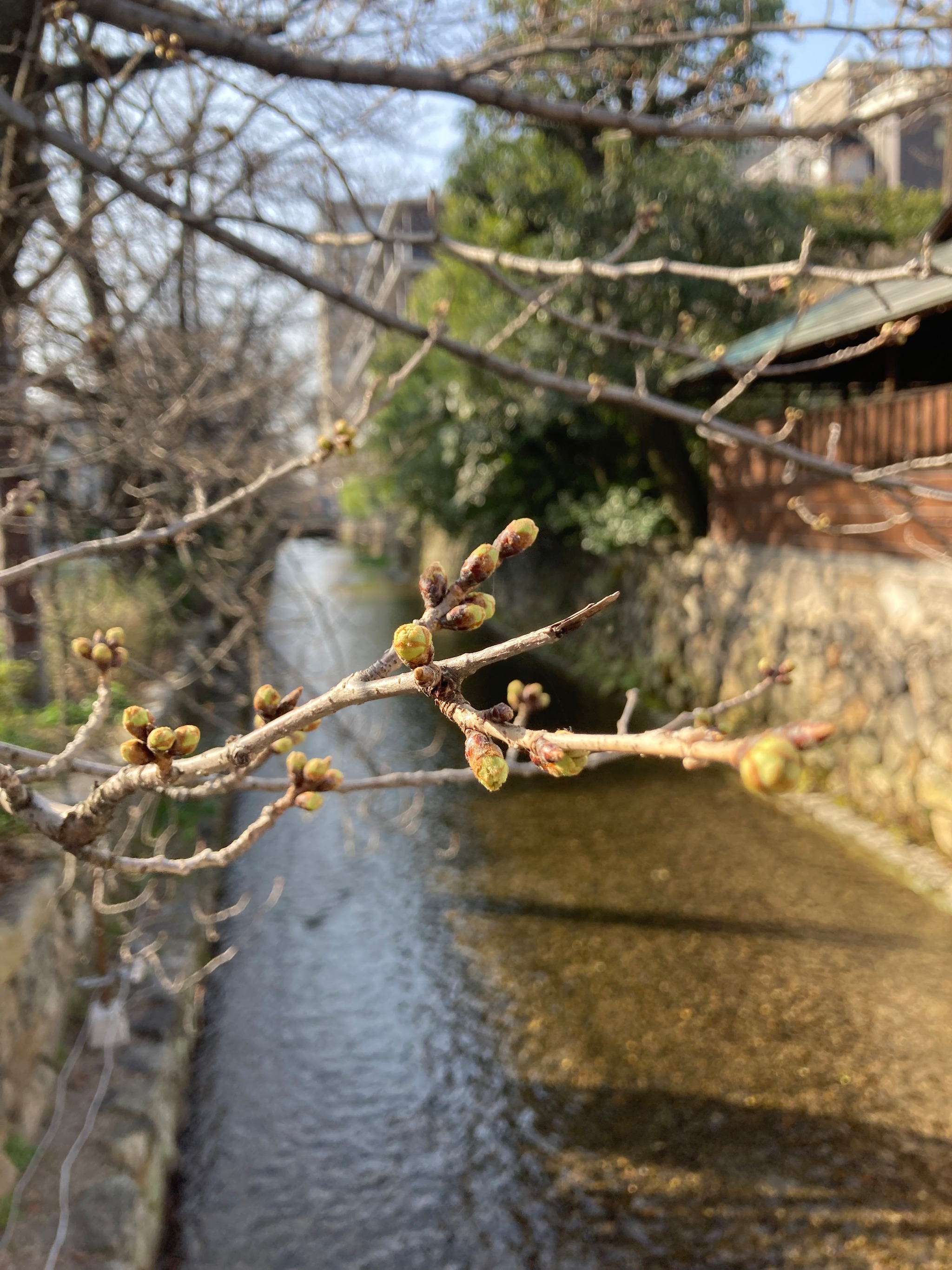仕事に向かう途中、時間に余裕があったので高瀬川にかかる押小路の橋の上から下流を眺めてみました。